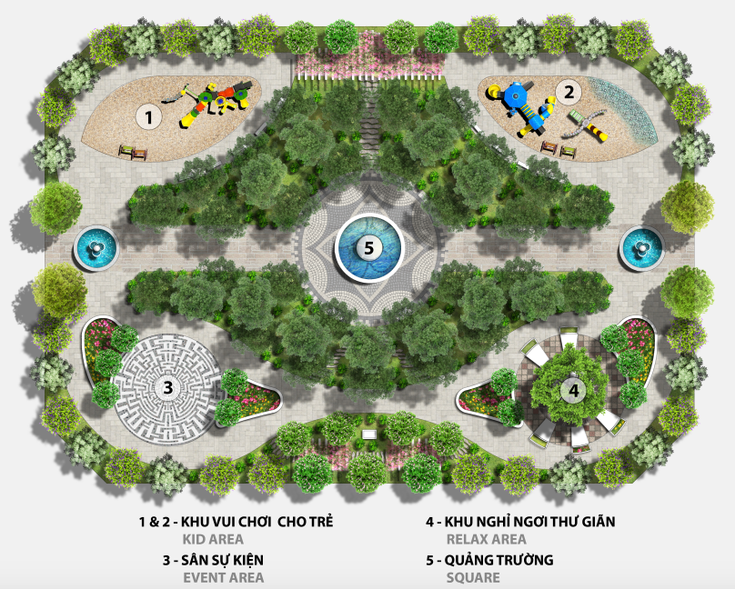 Nơi đây được ví như rừng xanh giữa phố thị vì những không gian chiều cây xanh đảm bảo sự tươi mát, đem đến cảm giác thanh bình, gần gũi. Với những khu vui chơi trẻ em, quảng trường,… khu đô thị sẽ trở thành mái nhà chung, nơi những gia đình có thể gặp gỡ, giao lưu, tạo nên những kỉ niệm đáng nhớ cùng nhau.